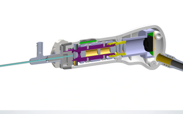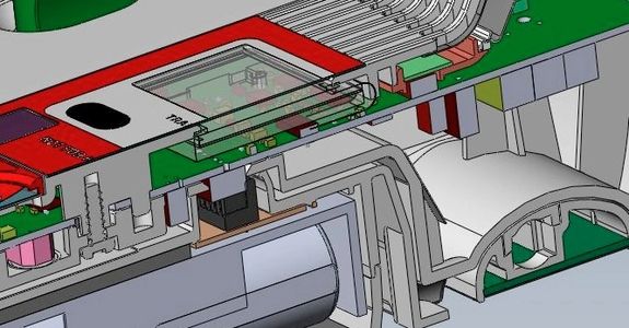 This compact device packed small intricate components into a small, ergonomic package. Our involvement included designing the injection-molded parts with snap fits and ultrasonic welding, reviewing the tool design, writing production documentation including assembly instructions, and assisting with production startup. The small startup, our client, was bought by a larger company due to their successful product launch.